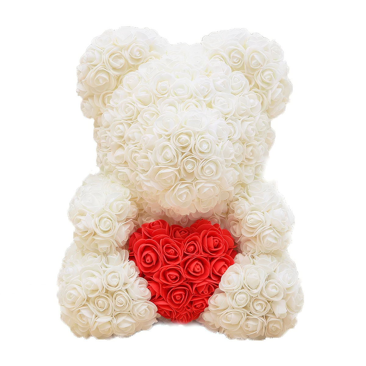 Мишка из роз бежевый с красным сердцем (40 см) с доставкой по г Томск: вы можете заказать подарок в интернет магазине «Флормания» по цене за 4590 руб.