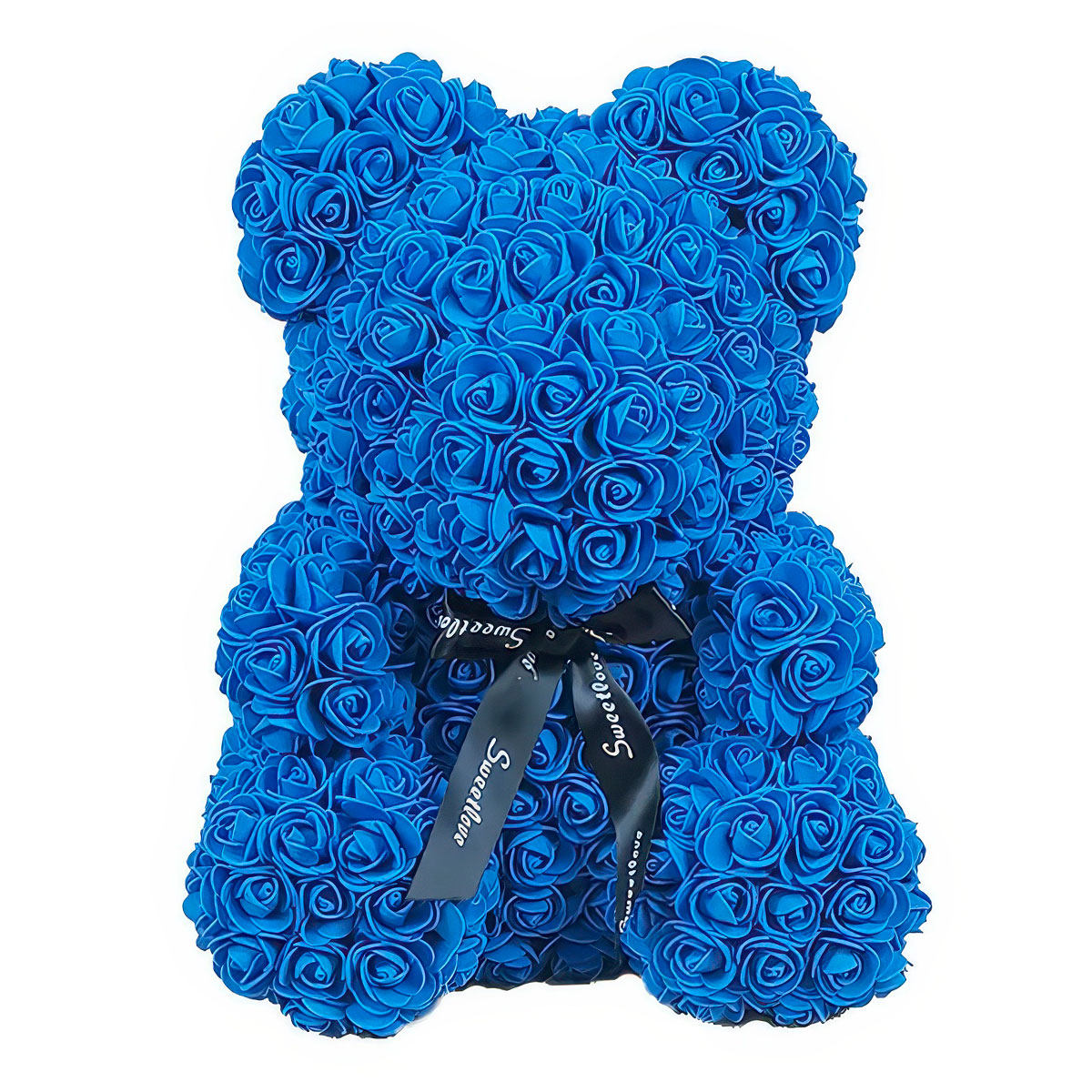 Мишка из роз синий — созданный из более чем 600 великолепных 3D розочек.