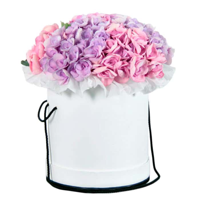 Гортензия микс (розовая, сиреневая). Упаковка (шляпная коробка, квадратный бокс, коробка сердце, оазис)