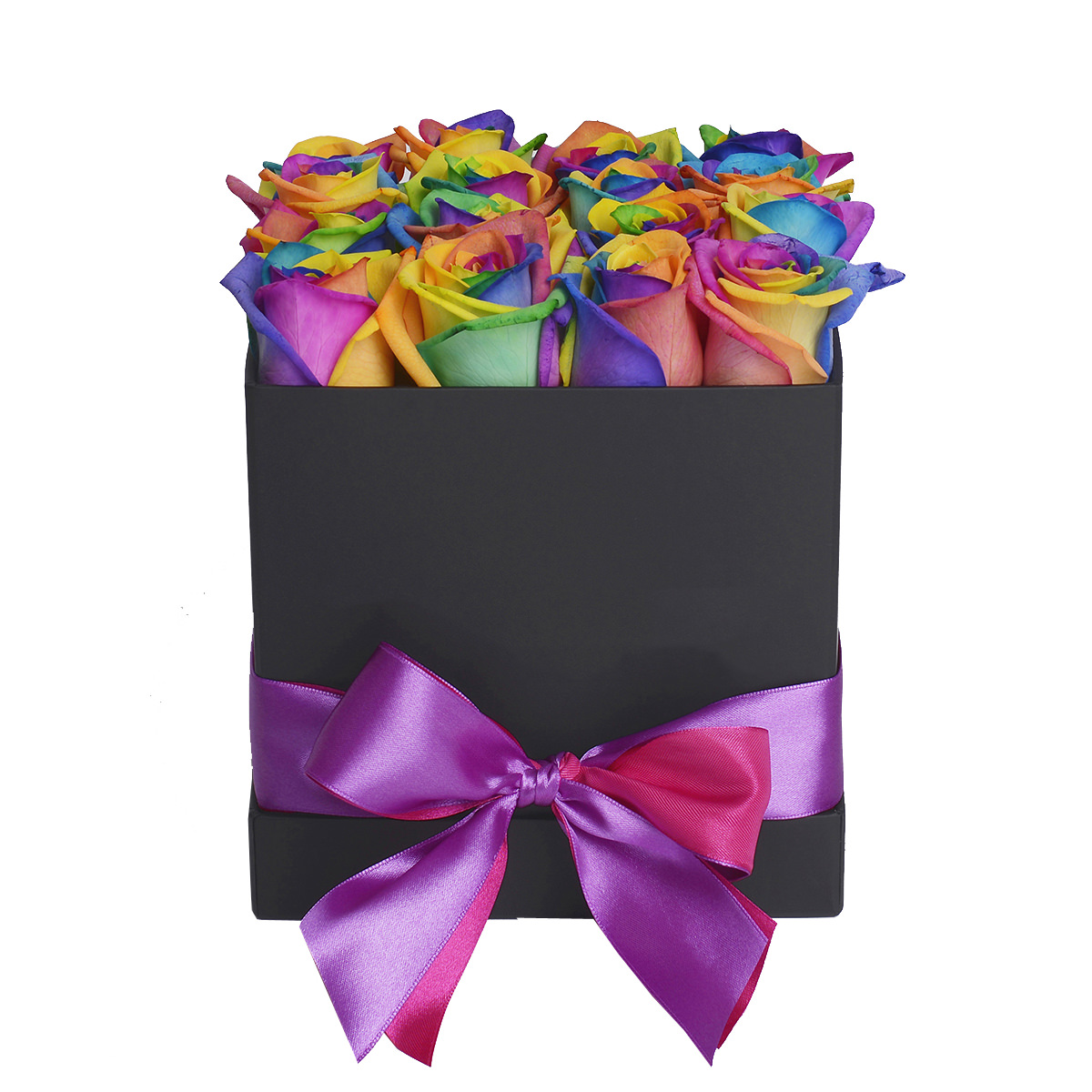 Цветы в коробке «Радужные Розы» с доставкой по г Томск: вы можете заказать букет в цветочном салоне «Флормания» по цене от 3290 руб.