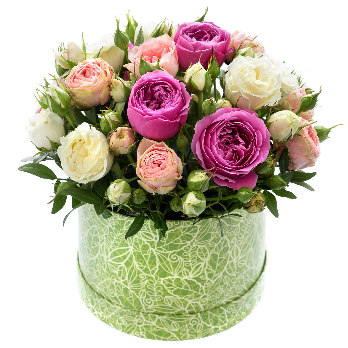 Цветы в коробке «Утренний жемчуг» с доставкой по г Томск: вы можете купить букет в цветочном супермаркете «Флормания» по цене от 3290 руб.