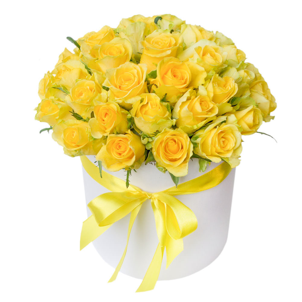 Цветы в коробке «Желтые Розы» с доставкой по г Томск: вы можете заказать букет в супермаркете цветов «Флормания» по цене от 3290 руб.