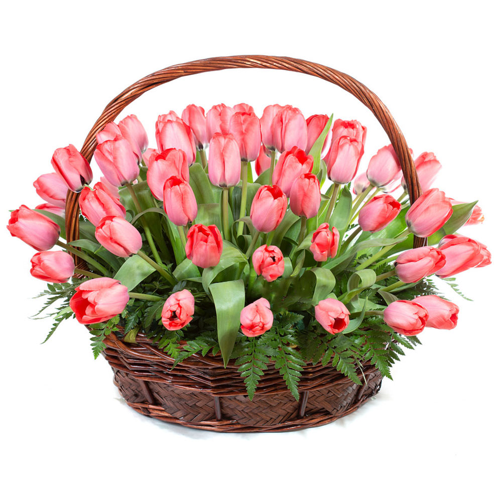 Цветы в корзинке «Розовые тюльпаны» с доставкой по г Томск: вы можете заказать букет в супермаркете цветов «Флормания» по цене от 3790 руб.
