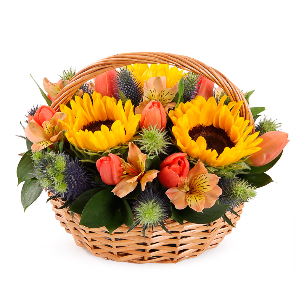 Цветы в корзинке «Солнечный день» с доставкой по г Томск: вы можете заказать букет в цветочном гипермаркете «Флормания» по цене от 3790 руб.