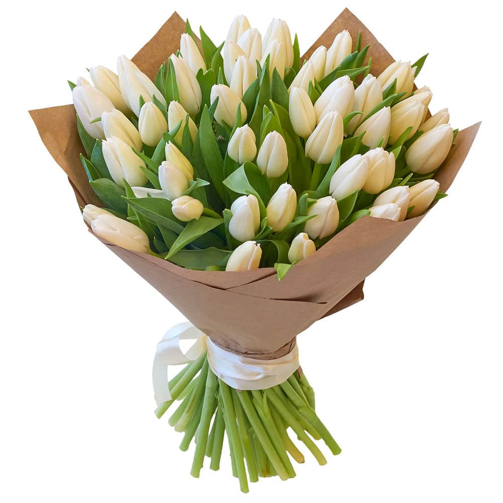 Тюльпаны белые с доставкой по г Томск: вы можете заказать букет в цветочном гипермаркете «Флормания» по цене за 180 руб.
